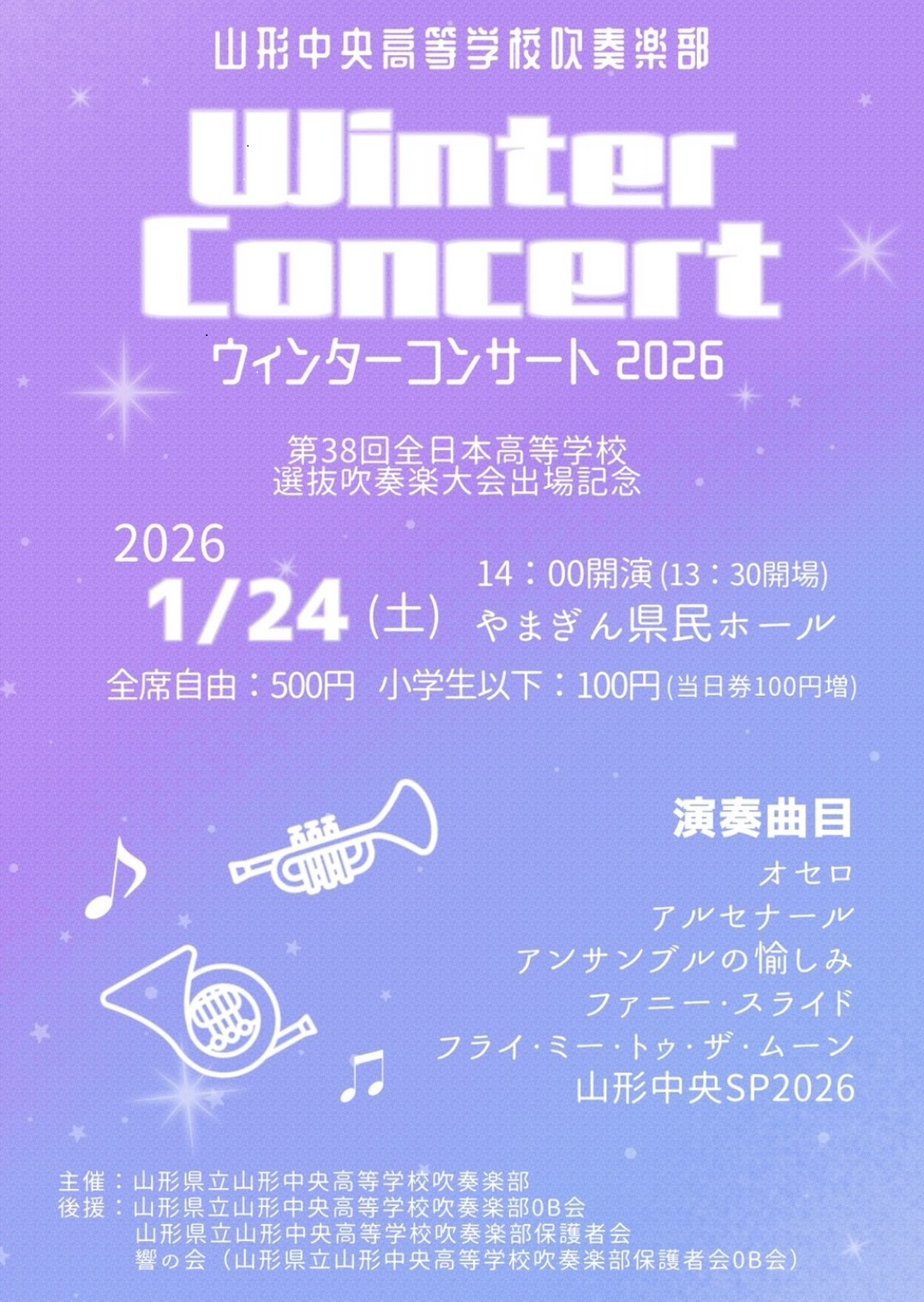 問い合わせ 山形中央高校吹奏楽部顧問 岡崎(023-641-7311)