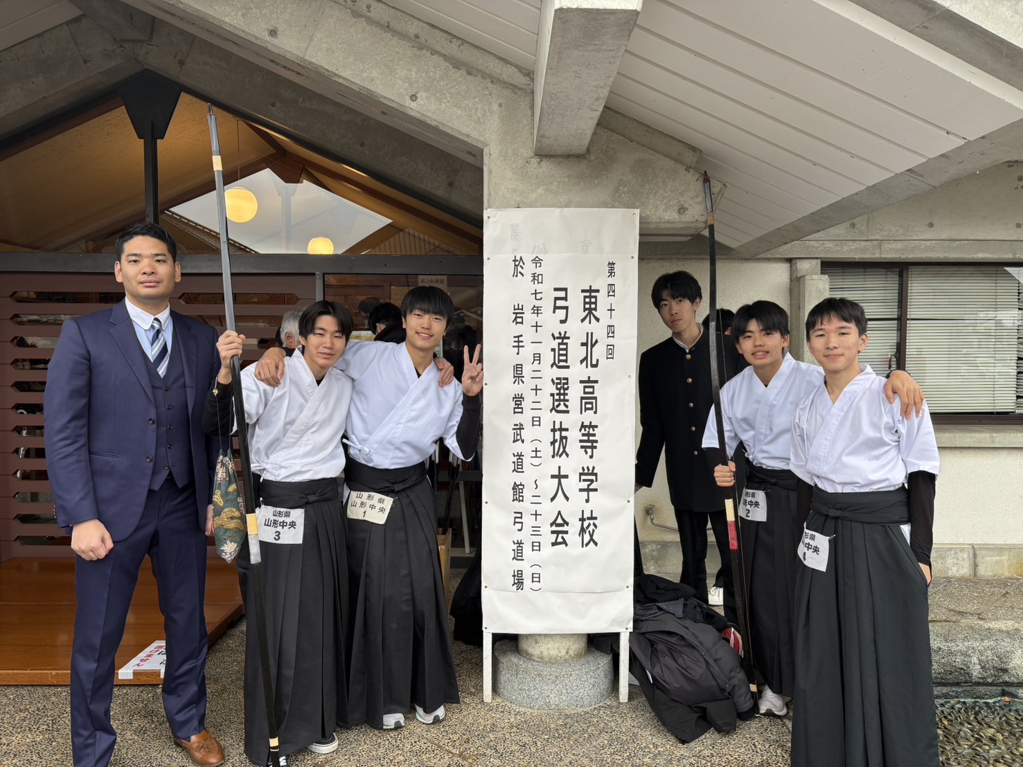 11月22日(土)、23日(日)、岩手県盛岡市で開催された第44回東北高等学校弓道選抜大会に男子団体が出場しました。本校の的中は揮わず、予選通過は叶いませんでした。東北大会のレベルの高さを実感し、全国選抜大会に向けて一層の鍛錬の必要性を感じました。