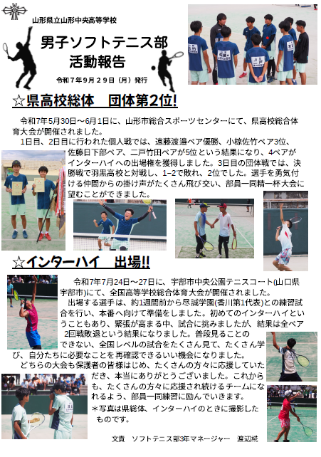 令和7年度山形県総合体育大会・中国インターハイ活動報告